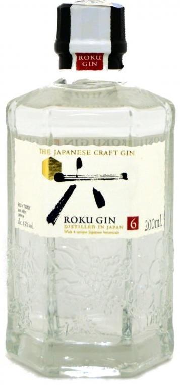 Japonský gin Roku z vyhlášené palírny Suntory. Roku znamená v japonštině číslo šest. Gin je tvořen z 6 specifických bylin, pocházejících z Japonska z různých ročních období. Jaro zastupují květy a listy sakury, léto zelené čaje sencha a gyokuro, podzim pepř sanshō a zimu kůra citrusů yuzu. Každá z bylin byla sklizena na vrcholu své sezóny. Z klasických ginových surovin obsahuje jalovec, kořen a semena anděliky, skořici, kardamon, koriandr a kůru pomerančů a citronů. V chuti a vůni dominují rostlinné a zemité tóny s nádechem ovocné sladkosti, v závěru jsou výrazné kořenité tóny.